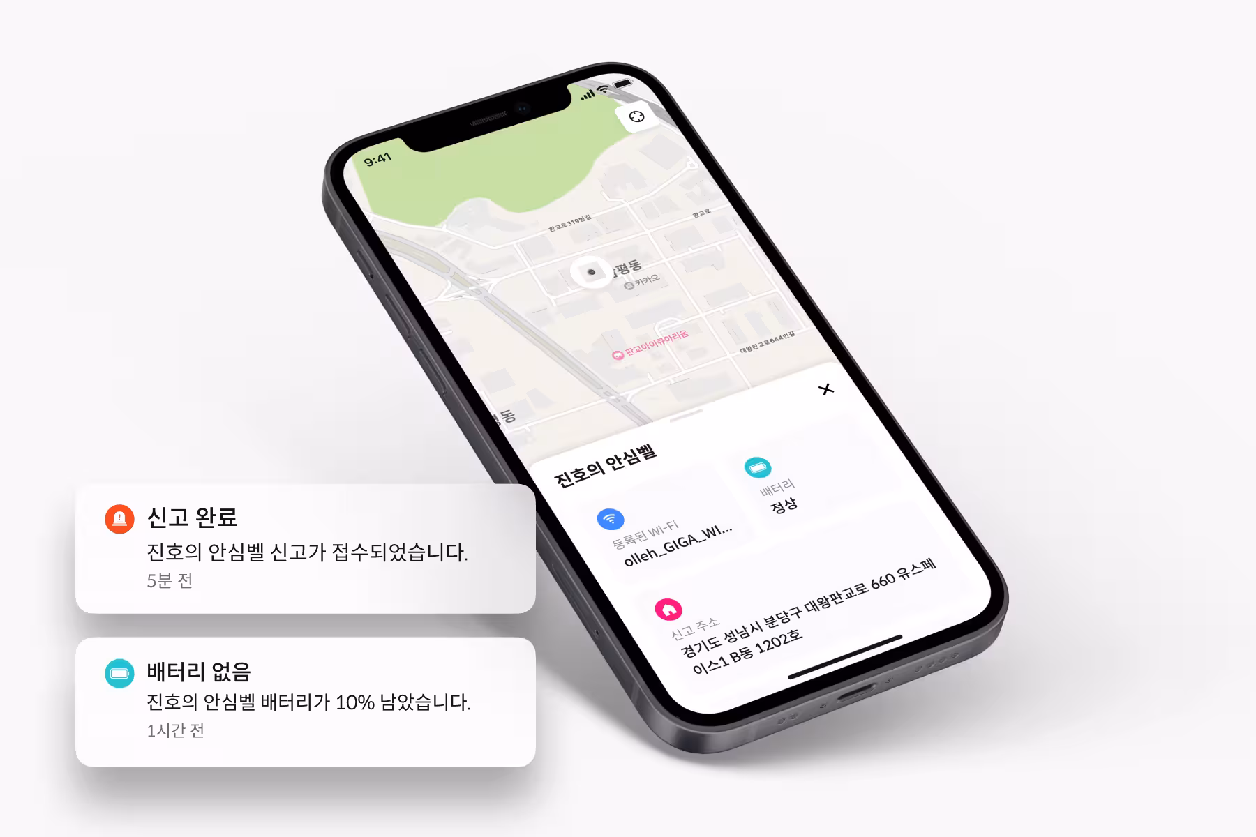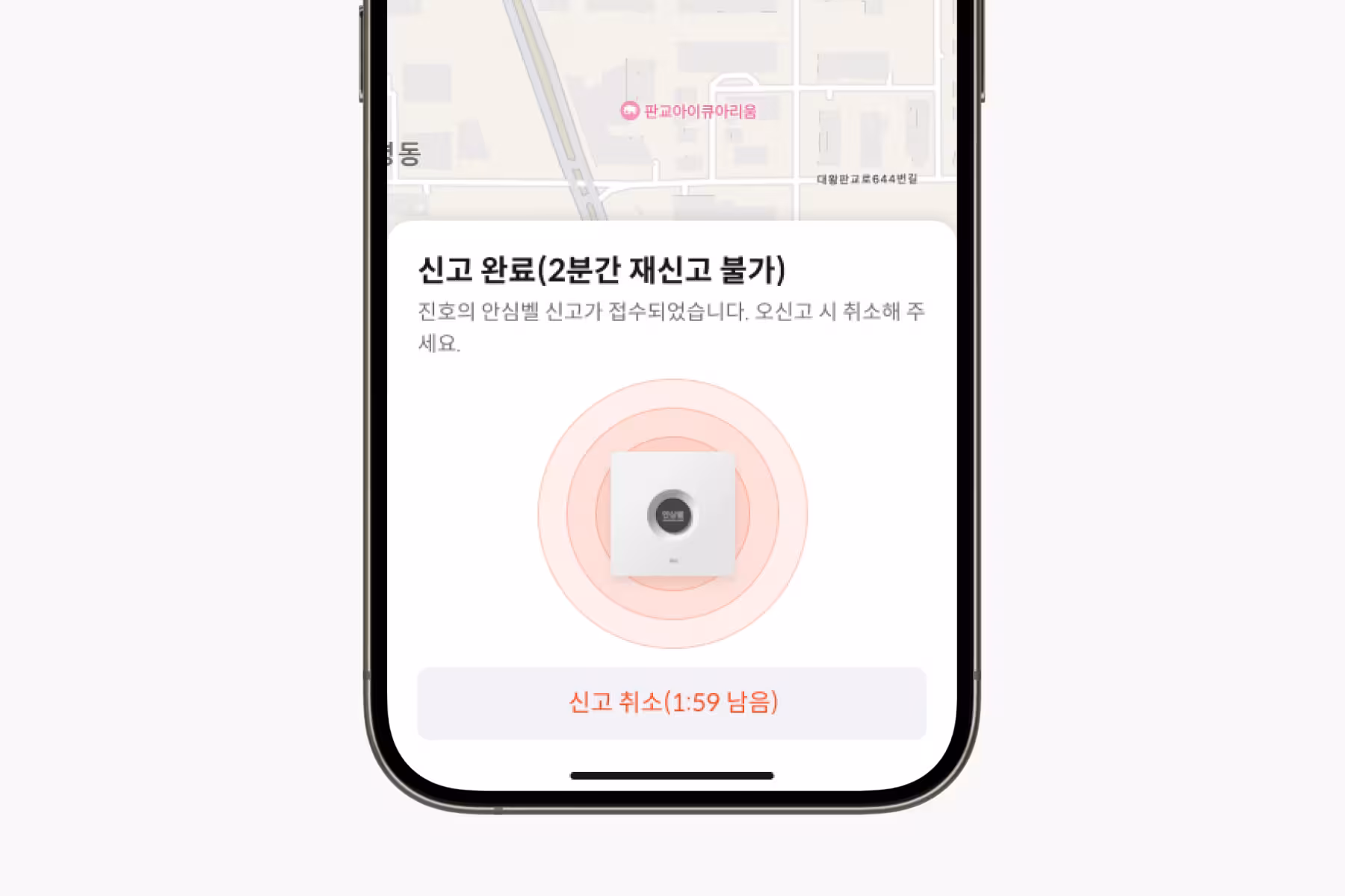 앱을 통해 안심벨의 신고가 정상적으로 접수되었는지 즉시 확인할 수 있으며, 잘못된 신고는 2분 내 취소할 수 있도록 설정되어 있습니다. 실시간 확인과 제어가 가능해 오작동이나 오신고에 유연하게 대응할 수 있습니다.