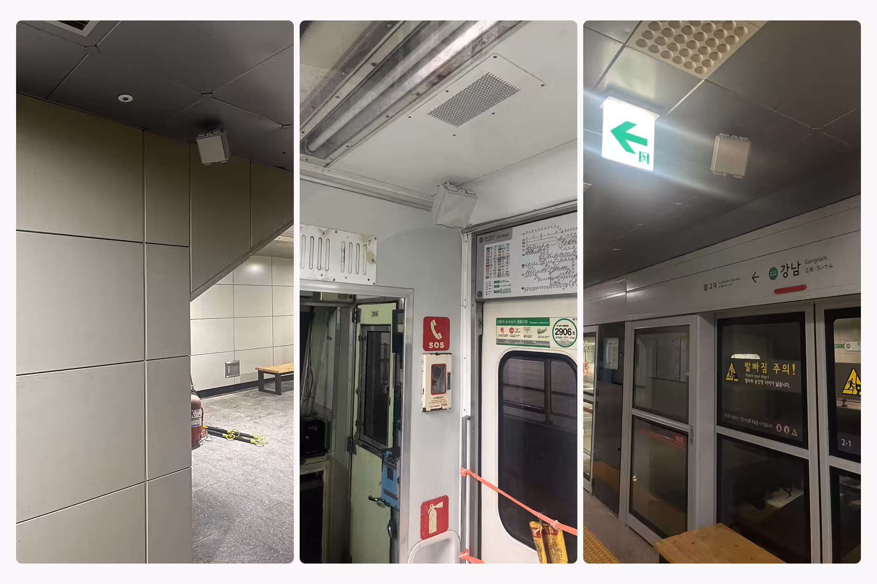 소방 훈련장 내 지하철 차량, 계단, 통로 등 현장의 실제 구조를 분석하여 트윈트래커를 최적의 위치에 맞춤형으로 설치합니다. 각 현장 특성을 면밀히 고려한 배치와 효율적인 구성을 통해 소방대원의 위치를 오차 없이 정밀하게 추적할 수 있습니다.